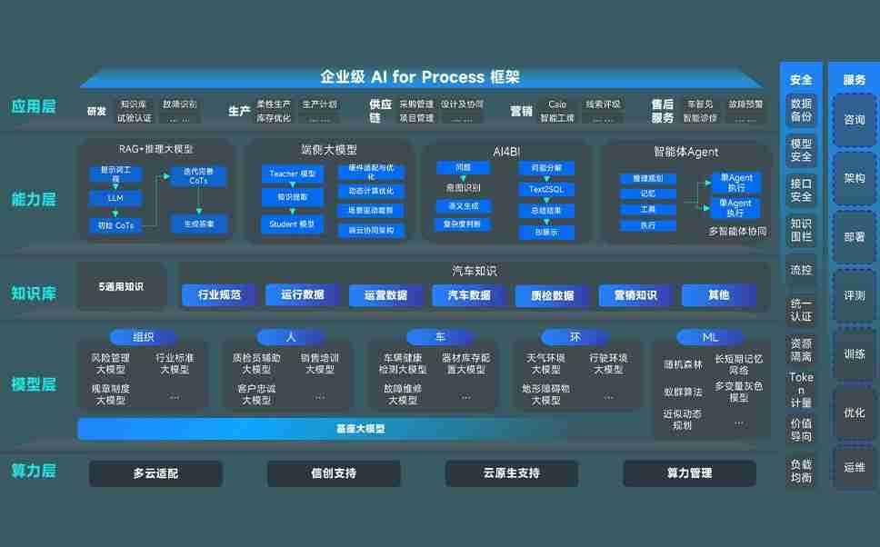 多多28问学智车解决方案是一套基于AI技术的汽车行业智能化系统,,,,覆盖从底层算力到顶层AI应用的全栈方案。。方案由算力层、、模型层和应用层组成:算力层,,,,方案支持多种一体机配置,,具备云端灵活部署、、、多云适配以及动态优化计算资源的能力;模型层,,,,多多28问学平台版提供了企业级AI应用一站式构建与管理平台,,,,支持基于后训练强化技术的汽车企业专属模型的训练、、、、评测和运营;应用层,,多多28问学DeepSeek版提供包括超级员工、、、、智能招采、、智能营销、、、、智能客服、、、、AI for BI等一系列解决方案,,,可助力汽车行业实现数字化转型,,让管理更智能、、、响应更敏捷。。。。